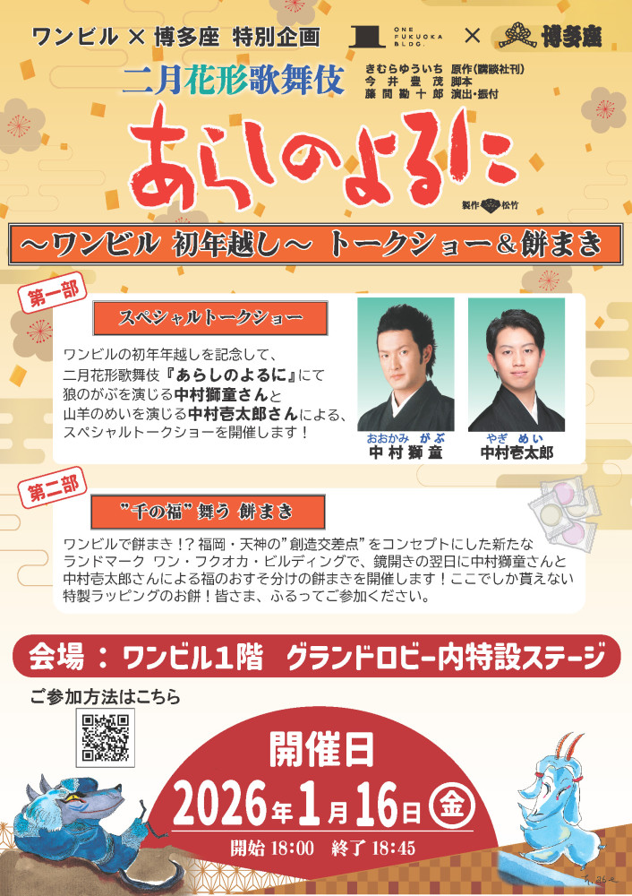【ワンビル×博多座 特別企画】~ワンビル初年越し~トークショー&餅まき開催のお知らせ!