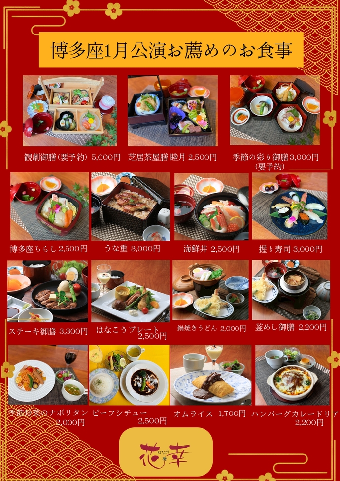 博多座1月の観覧券をご提示のお客様はご飲食代を5%オフでご利用いただけます。